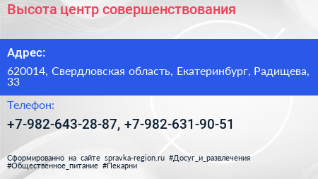 Высота, центр совершенствования по адресу 620014, Свердловская область, Екатеринбург, Радищева, 33 в дальнейшем Организация, размещена в следующих категориях: