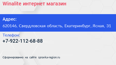 Winalite, интернет-магазин по адресу 620146, Свердловская область, Екатеринбург, Ясная, 31 в дальнейшем Организация, размещена в следующих категориях: