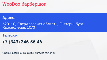WooDoo, барбершоп по адресу 620110, Свердловская область, Екатеринбург, Краснолесья, 10/3 в дальнейшем Организация, размещена в следующих категориях: