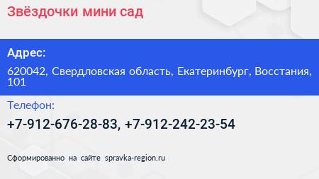 Звёздочки, мини-сад по адресу 620042, Свердловская область, Екатеринбург, Восстания, 101 в дальнейшем Организация, размещена в следующих категориях:
