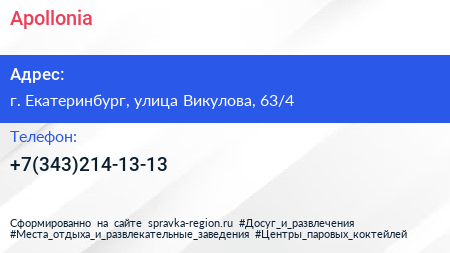 Apollonia по адресу г. Екатеринбург, улица Викулова, 63/4 в дальнейшем Организация, размещена в следующих категориях: