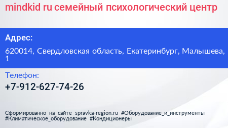 mindkid.ru, семейный психологический центр по адресу 620014, Свердловская область, Екатеринбург, Малышева, 1 в дальнейшем Организация, размещена в следующих категориях: