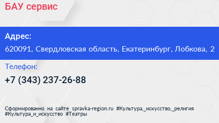 БАУ-сервис по адресу 620091, Свердловская область, Екатеринбург, Лобкова, 2 в дальнейшем Организация, размещена в следующих категориях: