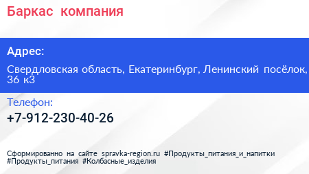 Баркас+, компания по адресу Свердловская область, Екатеринбург, Ленинский посёлок, 36 к3 в дальнейшем Организация, размещена в следующих категориях: