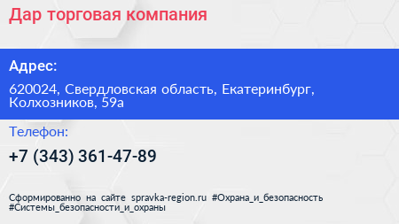 Дар, торговая компания по адресу 620024, Свердловская область, Екатеринбург, Колхозников, 59а в дальнейшем Организация, размещена в следующих категориях: