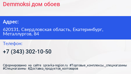 Demmoksi, дом обоев по адресу 620131, Свердловская область, Екатеринбург, Металлургов, 84 в дальнейшем Организация, размещена в следующих категориях: