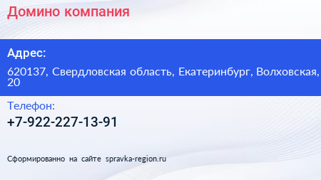 Домино, компания по адресу 620137, Свердловская область, Екатеринбург, Волховская, 20 в дальнейшем Организация, размещена в следующих категориях: