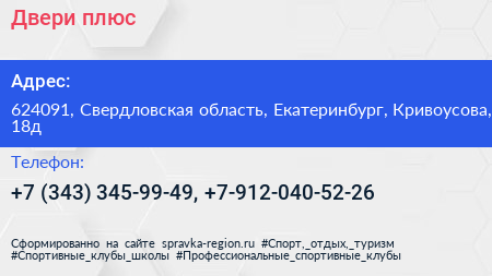 Двери плюс по адресу 624091, Свердловская область, Екатеринбург, Кривоусова, 18д в дальнейшем Организация, размещена в следующих категориях: