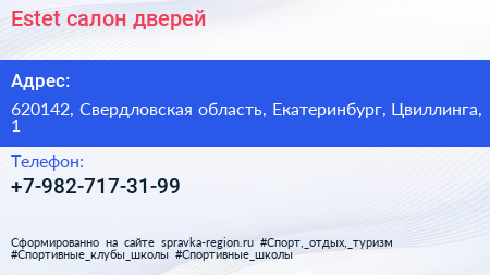 Estet, салон дверей по адресу 620142, Свердловская область, Екатеринбург, Цвиллинга, 1 в дальнейшем Организация, размещена в следующих категориях: