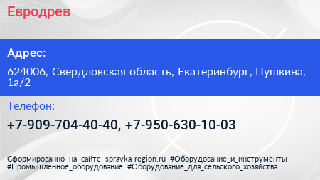 Евродрев по адресу 624006, Свердловская область, Екатеринбург, Пушкина, 1а/2 в дальнейшем Организация, размещена в следующих категориях: