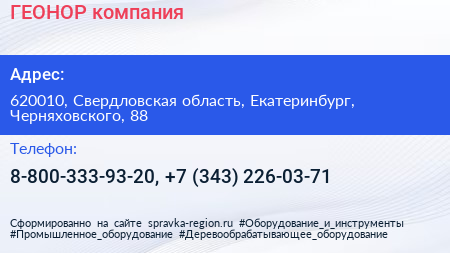 ГЕОНОР, компания по адресу 620010, Свердловская область, Екатеринбург, Черняховского, 88 в дальнейшем Организация, размещена в следующих категориях: