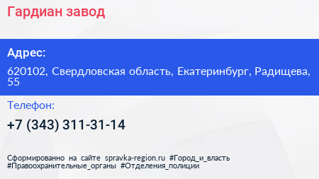 Гардиан, завод по адресу 620102, Свердловская область, Екатеринбург, Радищева, 55 в дальнейшем Организация, размещена в следующих категориях: