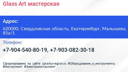 Glass-Art, мастерская по адресу 620000, Свердловская область, Екатеринбург, Малышева, 85а/1 в дальнейшем Организация, размещена в следующих категориях: