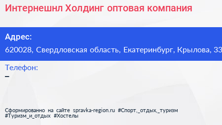 Интернешнл Холдинг, оптовая компания по адресу 620028, Свердловская область, Екатеринбург, Крылова, 33 в дальнейшем Организация, размещена в следующих категориях: