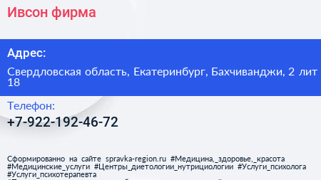 Ивсон, фирма по адресу Свердловская область, Екатеринбург, Бахчиванджи, 2 лит 18 в дальнейшем Организация, размещена в следующих категориях: