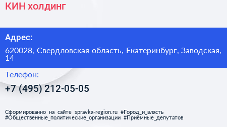 КИН холдинг по адресу 620028, Свердловская область, Екатеринбург, Заводская, 14 в дальнейшем Организация, размещена в следующих категориях: