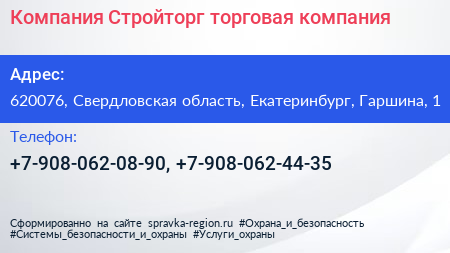Компания Стройторг, торговая компания по адресу 620076, Свердловская область, Екатеринбург, Гаршина, 1 в дальнейшем Организация, размещена в следующих категориях: