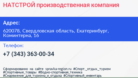 НАТСТРОЙ, производственная компания по адресу 620078, Свердловская область, Екатеринбург, Коминтерна, 16 в дальнейшем Организация, размещена в следующих категориях:
