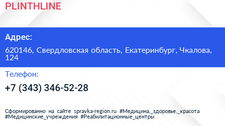 PLINTHLINE по адресу 620146, Свердловская область, Екатеринбург, Чкалова, 124 в дальнейшем Организация, размещена в следующих категориях: