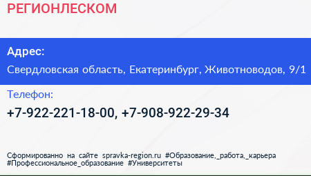 РЕГИОНЛЕСКОМ по адресу Свердловская область, Екатеринбург, Животноводов, 9/1 в дальнейшем Организация, размещена в следующих категориях:
