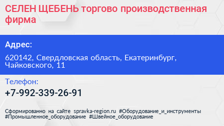СЕЛЕН-ЩЕБЕНЬ, торгово-производственная фирма по адресу 620142, Свердловская область, Екатеринбург, Чайковского, 11 в дальнейшем Организация, размещена в следующих категориях: