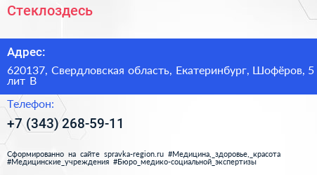 Стеклоздесь по адресу 620137, Свердловская область, Екатеринбург, Шофёров, 5 лит В в дальнейшем Организация, размещена в следующих категориях: