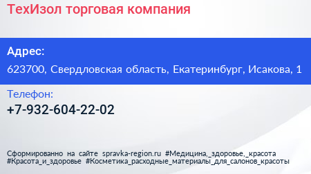 ТехИзол, торговая компания по адресу 623700, Свердловская область, Екатеринбург, Исакова, 1 в дальнейшем Организация, размещена в следующих категориях:
