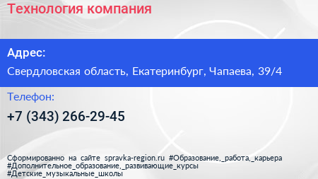 Технология, компания по адресу Свердловская область, Екатеринбург, Чапаева, 39/4 в дальнейшем Организация, размещена в следующих категориях: