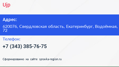Ujp по адресу 620076, Свердловская область, Екатеринбург, Водоёмная, 72 в дальнейшем Организация, размещена в следующих категориях: