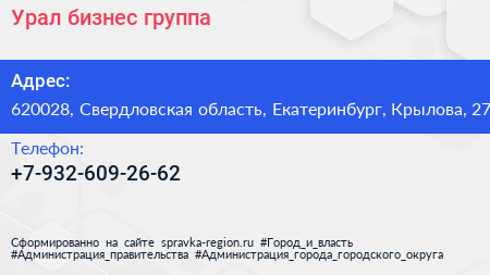 Урал, бизнес-группа по адресу 620028, Свердловская область, Екатеринбург, Крылова, 27 в дальнейшем Организация, размещена в следующих категориях: