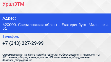 УралЗТМ по адресу 620000, Свердловская область, Екатеринбург, Малышева, 51 в дальнейшем Организация, размещена в следующих категориях: