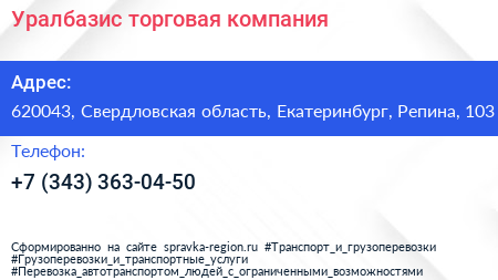 Уралбазис, торговая компания по адресу 620043, Свердловская область, Екатеринбург, Репина, 103 в дальнейшем Организация, размещена в следующих категориях: