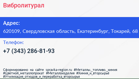 Вибролитурал по адресу 620109, Свердловская область, Екатеринбург, Токарей, 68 в дальнейшем Организация, размещена в следующих категориях:
