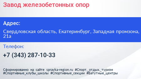 Завод железобетонных опор по адресу Свердловская область, Екатеринбург, Западная промзона, 21а в дальнейшем Организация, размещена в следующих категориях: