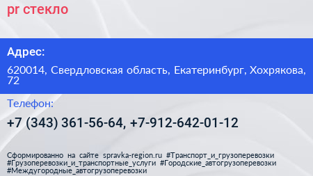 pr-стекло по адресу 620014, Свердловская область, Екатеринбург, Хохрякова, 72 в дальнейшем Организация, размещена в следующих категориях: