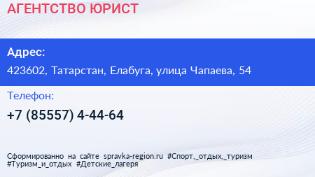 АГЕНТСТВО ЮРИСТ по адресу 423602, Татарстан, Елабуга, улица Чапаева, 54 в дальнейшем Организация, размещена в следующих категориях: