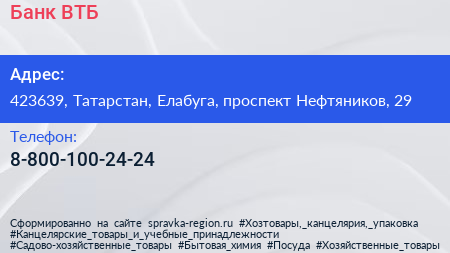 Банк ВТБ по адресу 423639, Татарстан, Елабуга, проспект Нефтяников, 29 в дальнейшем Организация, размещена в следующих категориях: