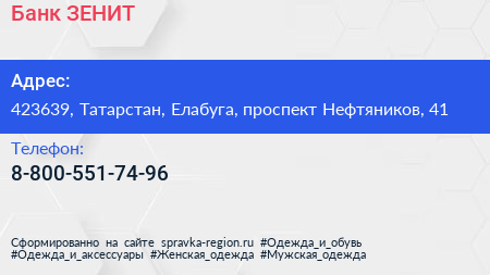 Банк ЗЕНИТ по адресу 423639, Татарстан, Елабуга, проспект Нефтяников, 41 в дальнейшем Организация, размещена в следующих категориях: