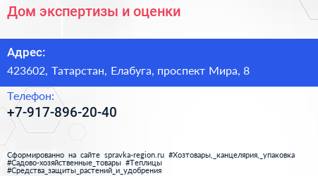 Дом экспертизы и оценки по адресу 423602, Татарстан, Елабуга, проспект Мира, 8 в дальнейшем Организация, размещена в следующих категориях: