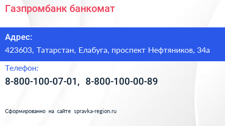 Газпромбанк, банкомат по адресу 423603, Татарстан, Елабуга, проспект Нефтяников, 34а в дальнейшем Организация, размещена в следующих категориях: