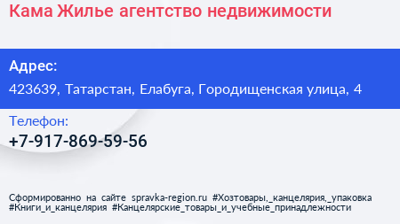 Кама-Жилье, агентство недвижимости по адресу 423639, Татарстан, Елабуга, Городищенская улица, 4 в дальнейшем Организация, размещена в следующих категориях: