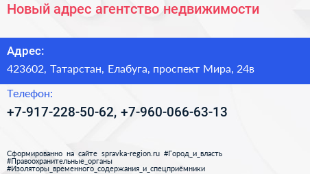 Новый адрес, агентство недвижимости по адресу 423602, Татарстан, Елабуга, проспект Мира, 24в в дальнейшем Организация, размещена в следующих категориях: