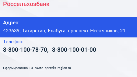 Россельхозбанк по адресу 423639, Татарстан, Елабуга, проспект Нефтяников, 21 в дальнейшем Организация, размещена в следующих категориях: