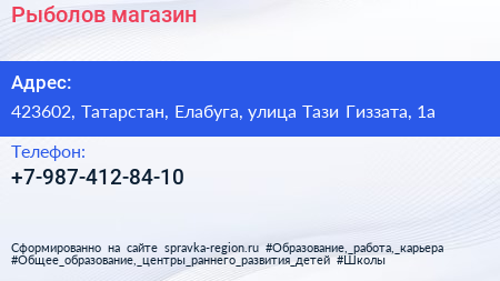 Рыболов, магазин по адресу 423602, Татарстан, Елабуга, улица Тази Гиззата, 1а в дальнейшем Организация, размещена в следующих категориях: