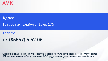 АМК по адресу Татарстан, Елабуга, 13-я, 1/5 в дальнейшем Организация, размещена в следующих категориях: