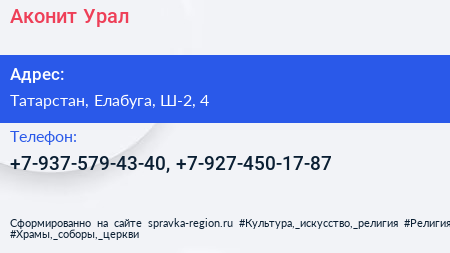 Аконит-Урал по адресу Татарстан, Елабуга, Ш-2, 4 в дальнейшем Организация, размещена в следующих категориях: