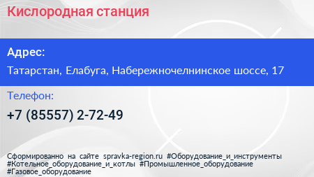 Кислородная станция по адресу Татарстан, Елабуга, Набережночелнинское шоссе, 17 в дальнейшем Организация, размещена в следующих категориях: