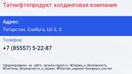 Татнефтепродукт, холдинговая компания по адресу Татарстан, Елабуга, Ш-2, 3 в дальнейшем Организация, размещена в следующих категориях:
