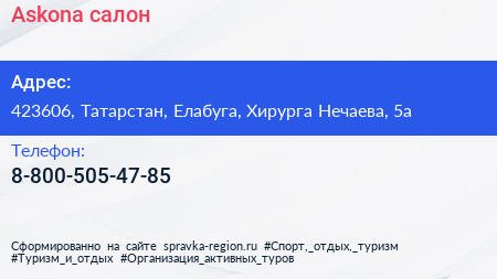 Askona, салон по адресу 423606, Татарстан, Елабуга, Хирурга Нечаева, 5а в дальнейшем Организация, размещена в следующих категориях: