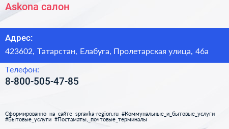 Askona, салон по адресу 423602, Татарстан, Елабуга, Пролетарская улица, 46а в дальнейшем Организация, размещена в следующих категориях: